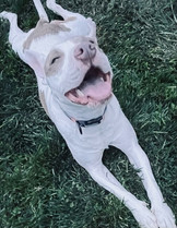 Simone loves to hop up in my truck and ride around. On pretty days we stop at the local dog park where she loves to run and sniff! She learned to "play nice" with the cats and loves to cuddle on the couch.